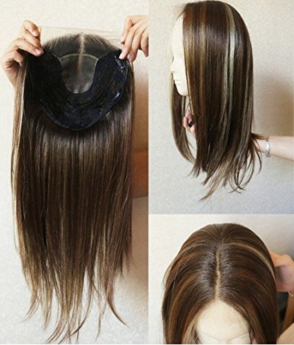 Feature: 8.5" * 9" Hope Topper is a clip in hair topper with extra large base that is perfect for hair loss. It features lace front and mono top which gives most natural hair line and allows you to part in any direction.The ready-to-wear synthetic hair looks and feels like natural hair. Only several highlight colors with dark root are available. If you need more colors, please contact us to customize. Kanekalon Synthetic Fiber: Looks and feels more like human hair; very smooth but not shiny Transparent Lace Front - Virtually invisiblelace front that gives you a natural looking hairline Monofilament Top - Creates the illusion of natural hair growth where the hair is parted and allows you to part the hair in any direction. Specifications: Materia: Synthetic Hair Color Shown: Chocolate Caramel Cap Size: Base 8.5"x9" Cap Construction: Lace front/Mono top base with clips around Approx. Length: 16" weight: 100g How to videos about toppers: https://www.youtube.com/watch?v=mNH7mjF7nTc https://www.youtube.com/watch?v=MNRYO8XjXaA https://www.youtube.com/watch?v=ehY9tPMgVCk 0 |
