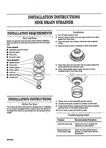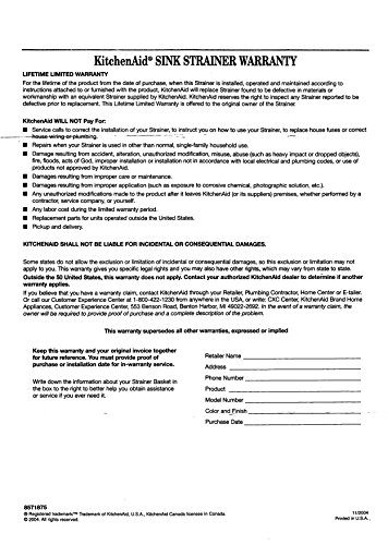 Kitchenaid Heavy Duty Kitchen Chrome Sink Drain Strainer 4396734
