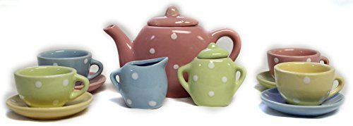 JUST FOR TEA 13 PIECE PORCELAIN POLKA DOT PRETEND TEA SET