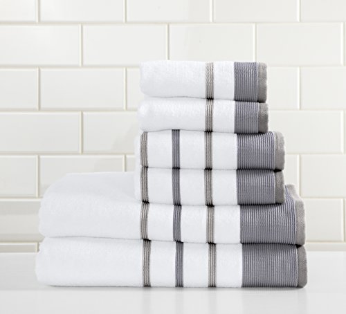 Studio : Great Bay Home Publisher : Great Bay Home Product Description Noelle Collection 6-Piece 100% Turkish Cotton Striped Towel Set These high-quality hotel/spa luxury towels add elegance and sophistication to any bathroom linen collection with their classic style and ultra plush heavyweight material. Buy them for your own bathroom or as a gift for weddings, birthdays and other special occasions.