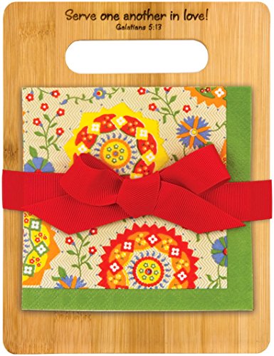 Brownlow Kitchen Brownlow Gifts Bamboo Cutting Board and Napkins Set with Scripture, Sunburst, Red/Green
