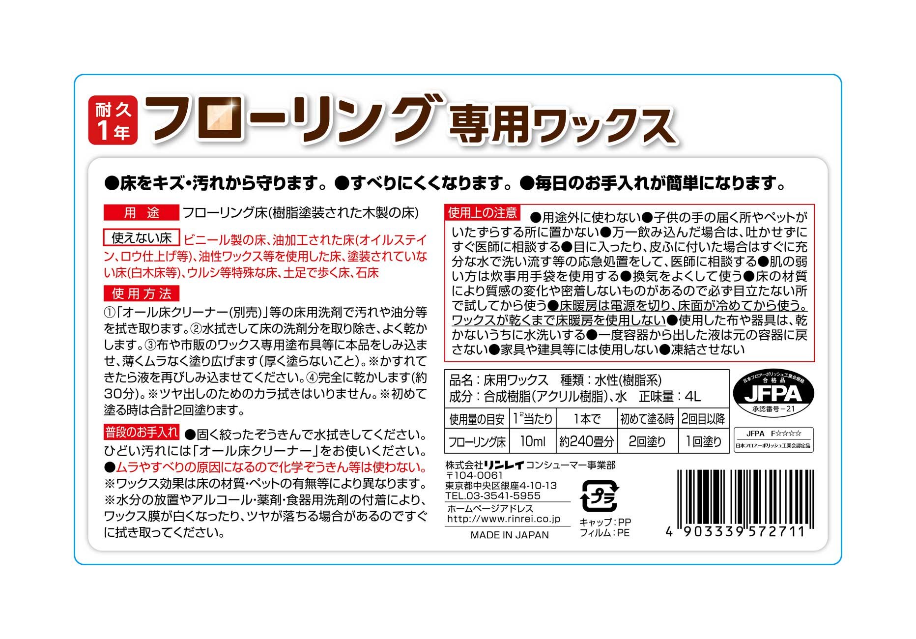 ● Researched about 7.700 types of flooring materials circulating in Japan (as of September 2010), it is a resin wax specially designed to demonstrate the most suitable performance for various floorings.