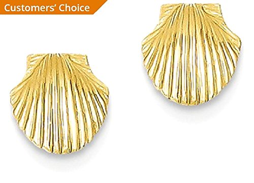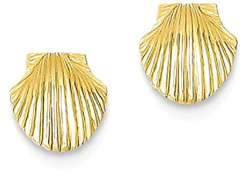 ICECARATS DESIGNER JEWELRY 14K YELLOW GOLD MINI SCALLOP SEA SHELL MERMAID NAUTICAL JEWELRY POST STUD BALL BUTTON STUD EARRINGS