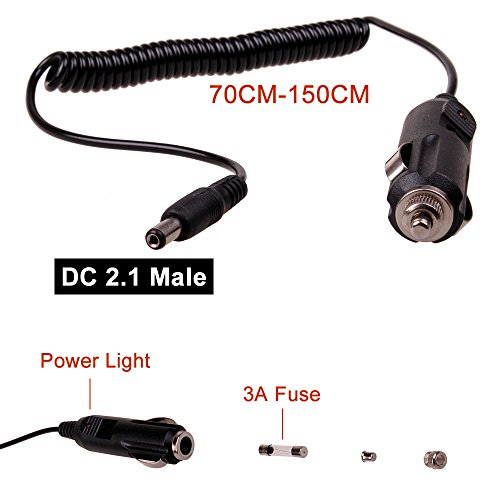 - Car Cigarette Lighter Power Cord for 12-Volt DC 2.1mm with 3 Amp fuse and LED indicator x 1 set