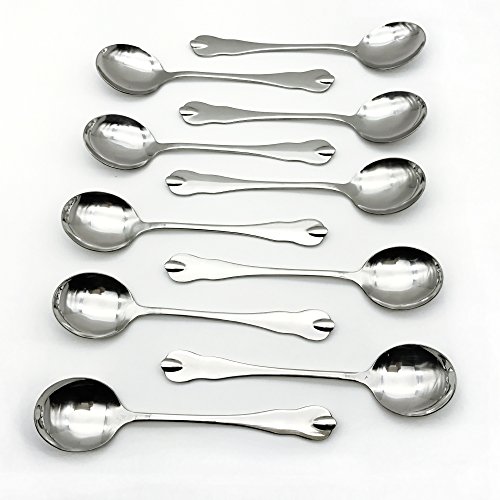 Wenmeili Set of 10 - Stainless Steel Round Table Spoons, Large Soup Spoons