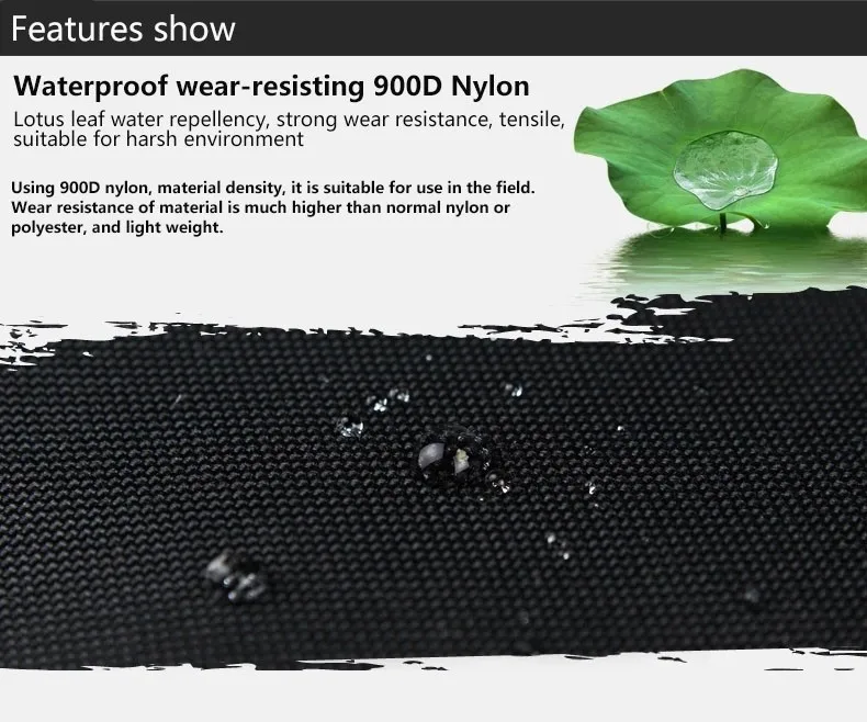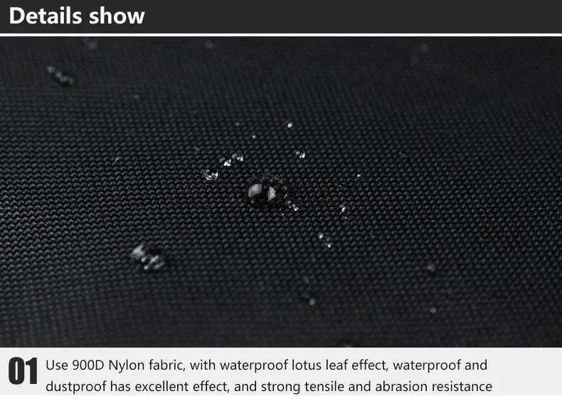 Use 900D Nylon fabric, with waterproof lotus leaf effect, waterproof and