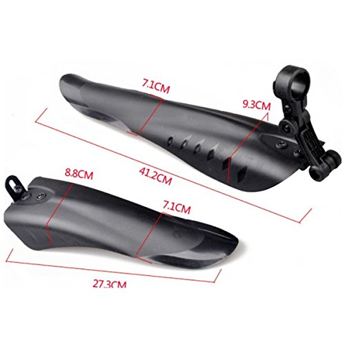 -. Feature : Enhance toughness, no damage / Fits 24-28" bikes / Rear universal clip-on bracket / Lengthen Bicycle Fender Set(41.2cm27.3cm) / The rear guard is seat post or rear frame spar mounted depending on your frame design and suits bikes with or without rear suspension.