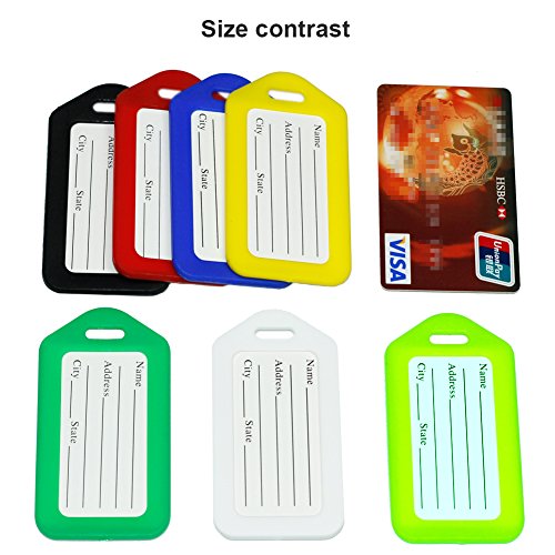 -. Feature : Notice: the Size! Dimensions (L x W): 3.4"x 1.9". Compact size make it easy to put anywhere in the pocket. / Notice: Without protected film front of the blank paper, so it will be NOT waterproof. / Want to find your own lage at the first sight from similar lage? This is the one just for you! Bright color to make your lage easy to identify. / Removable durable plastic strip, easy to attach and remove. Clear belt connect your lage and tag closely. / If you want, write the personal contact number, address, name on the tags to avoid lost.