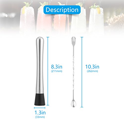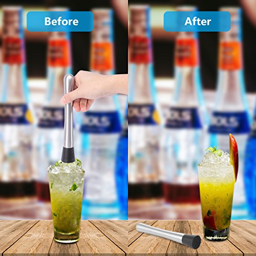 Are you ready to make your cocktail? You have a great recipe and fresh ingredients. Now all you need are the good tools! With the Lenink Muddler. A simple way to make Mojito Cocktail: 1.Take off the tender tip of mint and put the rest in a glass. Cut some lemon and lime and put it in a container for later use. 2.Add sugar to the glass. Use the muddler to mash the mint and sugar,then squeeze the juice from the lime and lemon into the cup,and also put the lime and lemon into the cup. (You can also use the muddler to smash lemon and lime.) 3.Use muddler to mash the ice cubes and put it in the glass,pour in white rum,pour in soda,finally decorated with the tender tip of mint. Size: Cocktail Muddler: length:8.3in/211mm width:1.3in/33mm Mixing Spoon:length:10.3in/262mm Package Included: 1pcs cocktail muddler 1pcs mixing spoon 0 |
