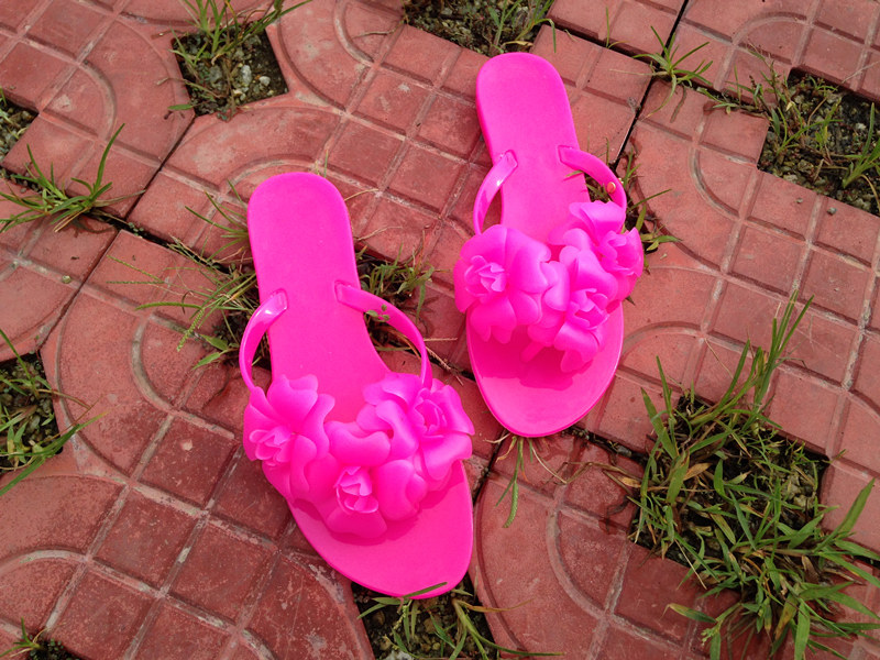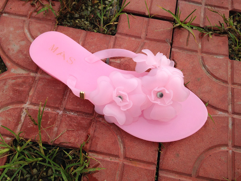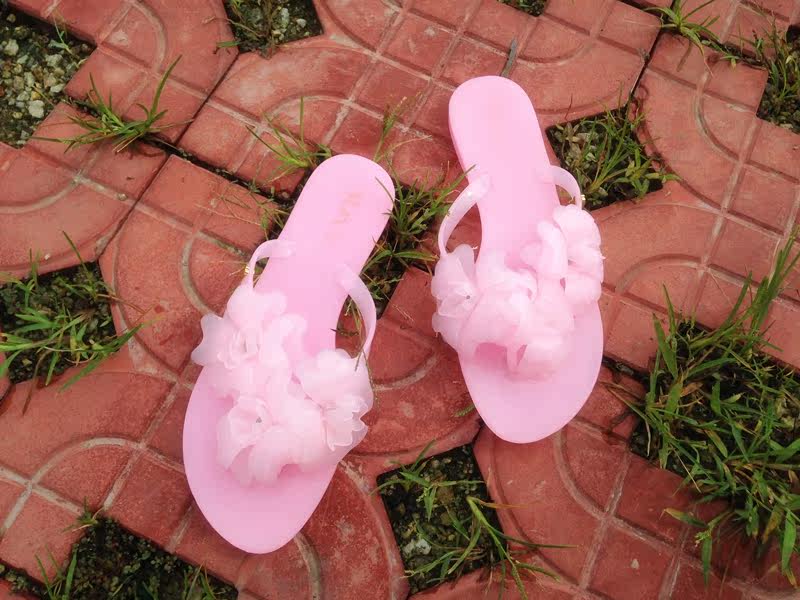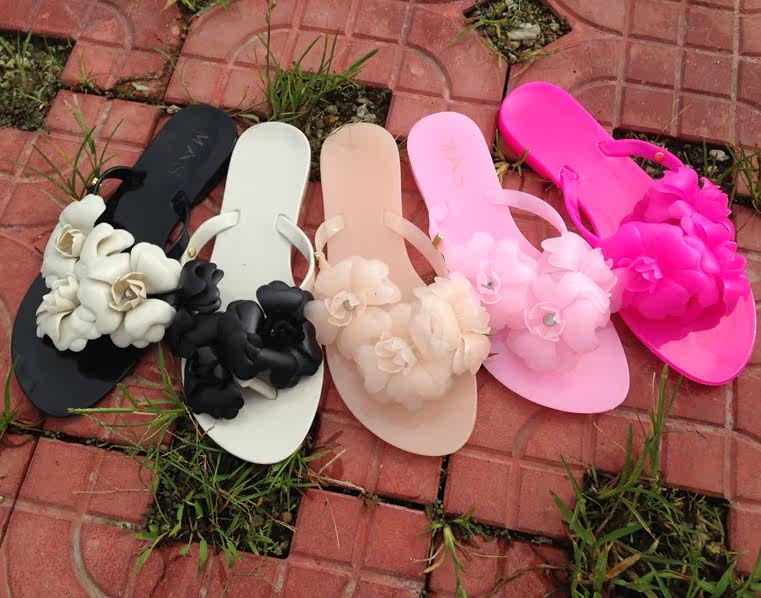 网络爆款山茶花人字拖果冻小香花朵平底夹趾夏沙滩鞋