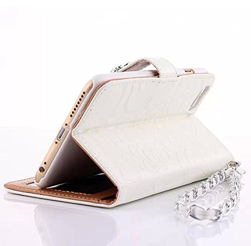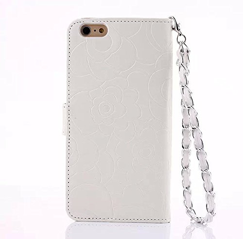 ACO-UINT iPhone 6s Walelt Case,iPhone 6 Wallet Case,[Emboss Flower Pattern] Purse Wallet Case with Bling Crystal Pendant,Folio Flip Cover Strap Case for iPhone 6/6s White