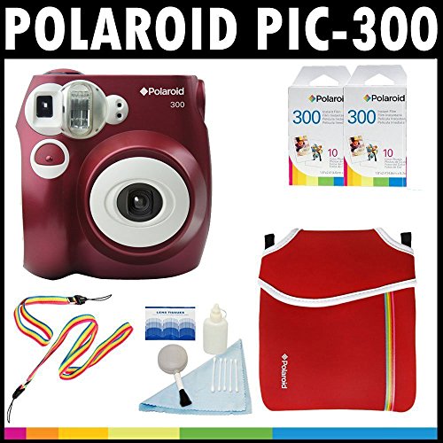 Polaroid PIC-300 Instant Film Analog Camera (Red) with (2) Polaroid 300 Instant Film Packs of 10 + Polaroid Neoprene Pouch + Polaroid Cleaning Kit + Neck & Wrist Strap