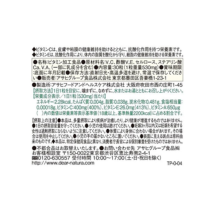 영양 성분 : 【배합량/1알(530mg)근처】 비타민C400mg 비타민E26mg 비타민A650μg