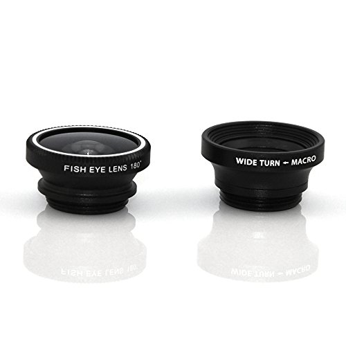 - Wide angle and macro lenses in a 2 in 1 set: these two small lenses are screwed together for easy storage. To use the wide angle, simply attach both lenses to the clip provided. To use the macro lens, simply unscrew the wide angle lens.