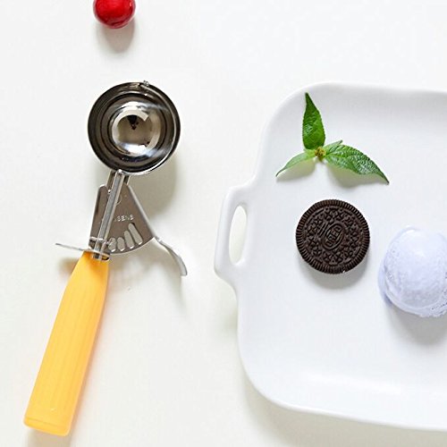 Easy to use: Smooth squeeze handle system, no platen or lever. You can effortlessly scoop out the perfect ice cream ball, sleek no damage, very simple and perfect.