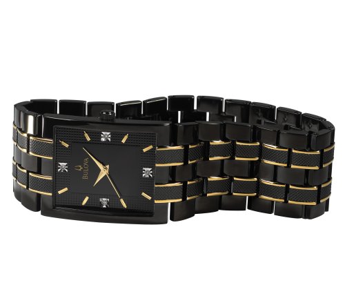 -. Binding : Watch -. Brand : Bulova -. Color : black -. Department : mens -. EAN : 0071159002955 -. Feature : Due to a recent redesign by Bulova, recently manufactured Bulova watches, including all watches sold and shipped by Amazon, will not feature the Bulova tuning fork logo on the watch face. / Mineral crystal / Stainless-steel case; black dial / Quality Japanese-quartz movement -. Label : Bulova -. Manufacturer : Bulova -. Model : 98D004 -. MPN : 98D004 -. PackageQuantity : 1 -. PartNumber : 98D004 -. ProductGroup : Watch -. ProductTypeName : WATCH -. Publisher : Bulova -. ReleaseDate : 2013-07-28 -. Studio : Bulova -. Title : Bulova Men's 98D004 Diamond Dial Watch -. UPC : 316118376907