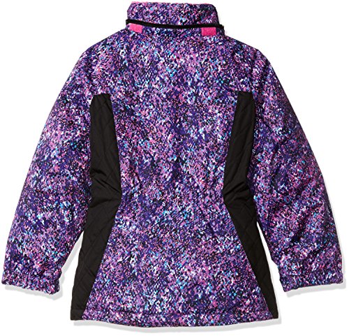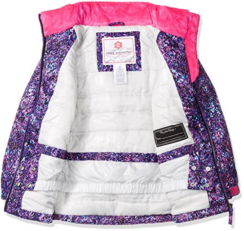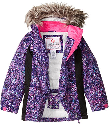Free Country snowboard jacket featuring a fun, chic print and cool color blocking will make her warm and happy. Outer shell is signature Free Country radiance fabric that is both water/wind resistant and lightweight. A detachable faux fur trim hood, adjustable cuffs, snow skirt, butter pile fleece lined collar and multiple pockets round out the exceptional features of this coat.Feature