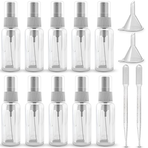 INCLUDES: 10 Pack - Empty 20ml (0.66oz.) Clear Plastic Fine Mist Spray Bottle + (2x) 3ml Transfer Pipette + (2x) Small Plastic Funnels + MagicFiber Microfiber Cleaning Cloth.