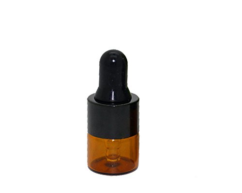 25Pcs Mini 1ML Empty Refillable Amber Glass Essential Oil Bottles Perfume Cosmetic Liquid Aromatherapy Lotion Sample Storage Containers Vials Jars with Eye Dropper Dispenser, Black Cap