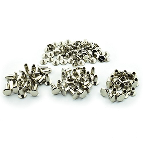 60 Sets Silvery Chicago Screws Assorted Kit 1/4 3/8 1/2 Inches Screw Posts Metal Accessories Nail Rivet Chicago Button For DIY Leather Decoration Bookbinding Round Flat Head Stud Screw
