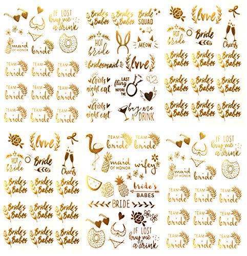 100+ STUNNING TATTOOS that match the vibrant images shown. Make any bachelorette party fun and fabulous with a touch of metallic tattoo bling. The bride and her bride tribe will love these for bachelorette party favors, supplies, gifts, and accessories.