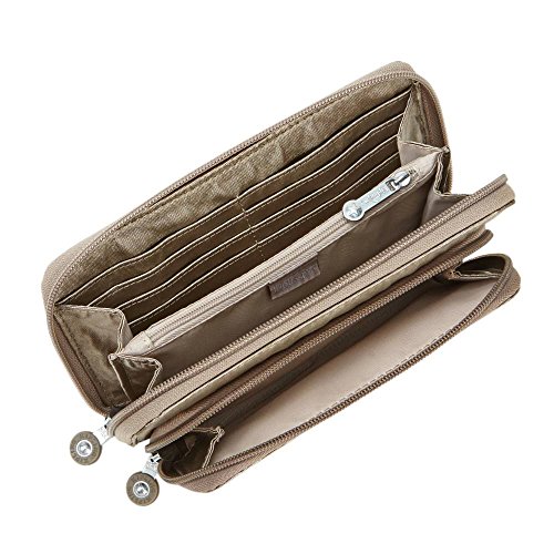 -. Feature : Outer front zip pouch / Inside: six credit card slots, billfold, center zip divider