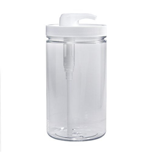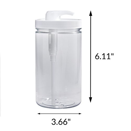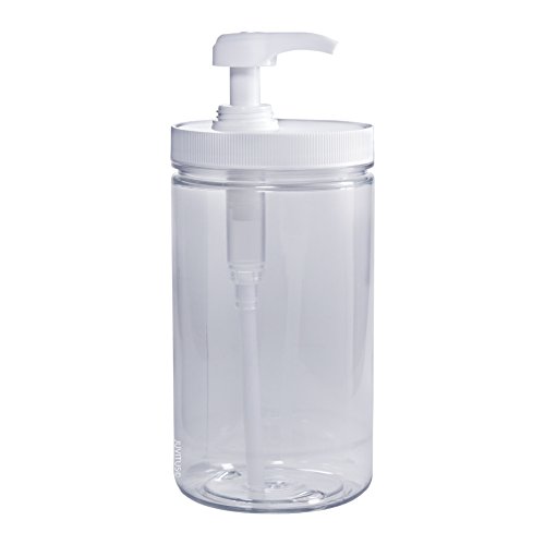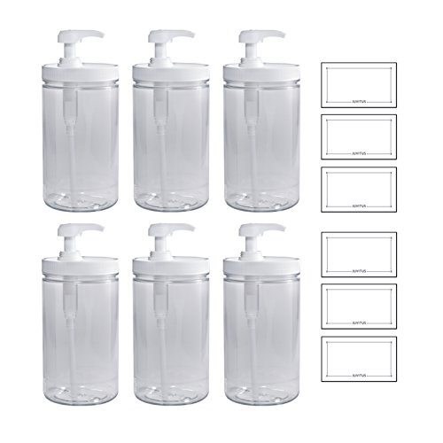 Clear 32 oz PET Plastic (BPA Free) Large Refillable Jar with Heavy Duty Twist Lock Cream Lotion Pump - (6 pack) + Labels