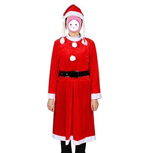 -. Title : Evaliana Velvet Santa Claus Christmas Costume Xmas Suit Outfits Dress Braided Hat Top Pants