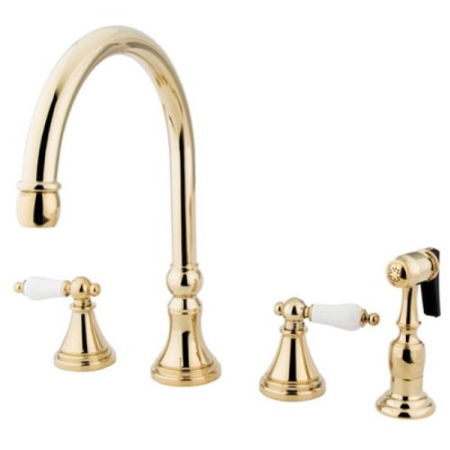 Kingston Brass KS2792PLBS 8-Inch Deck Mount Kitchen Faucet with Brass Sprayer, Polished Brass