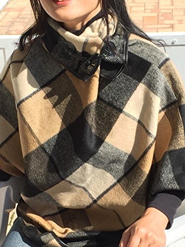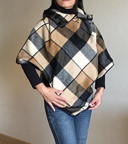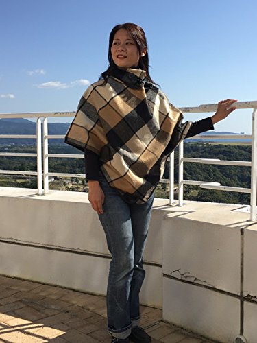 -. Title : レディース アウター チェック柄 おしゃれで 暖かい ポンチョ