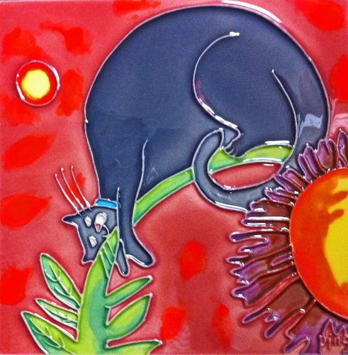 Continental Art Center BD-0346 8 by 8-Inch Plum Cartoon Cat on a Stem Ceramic Art Tile