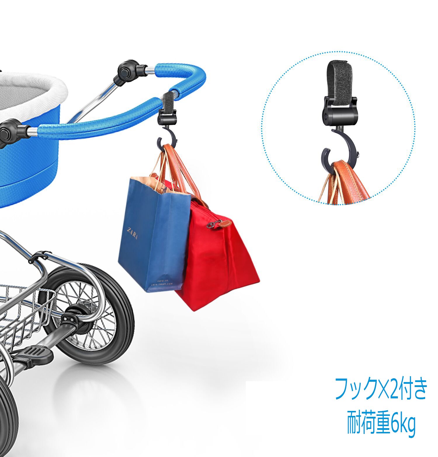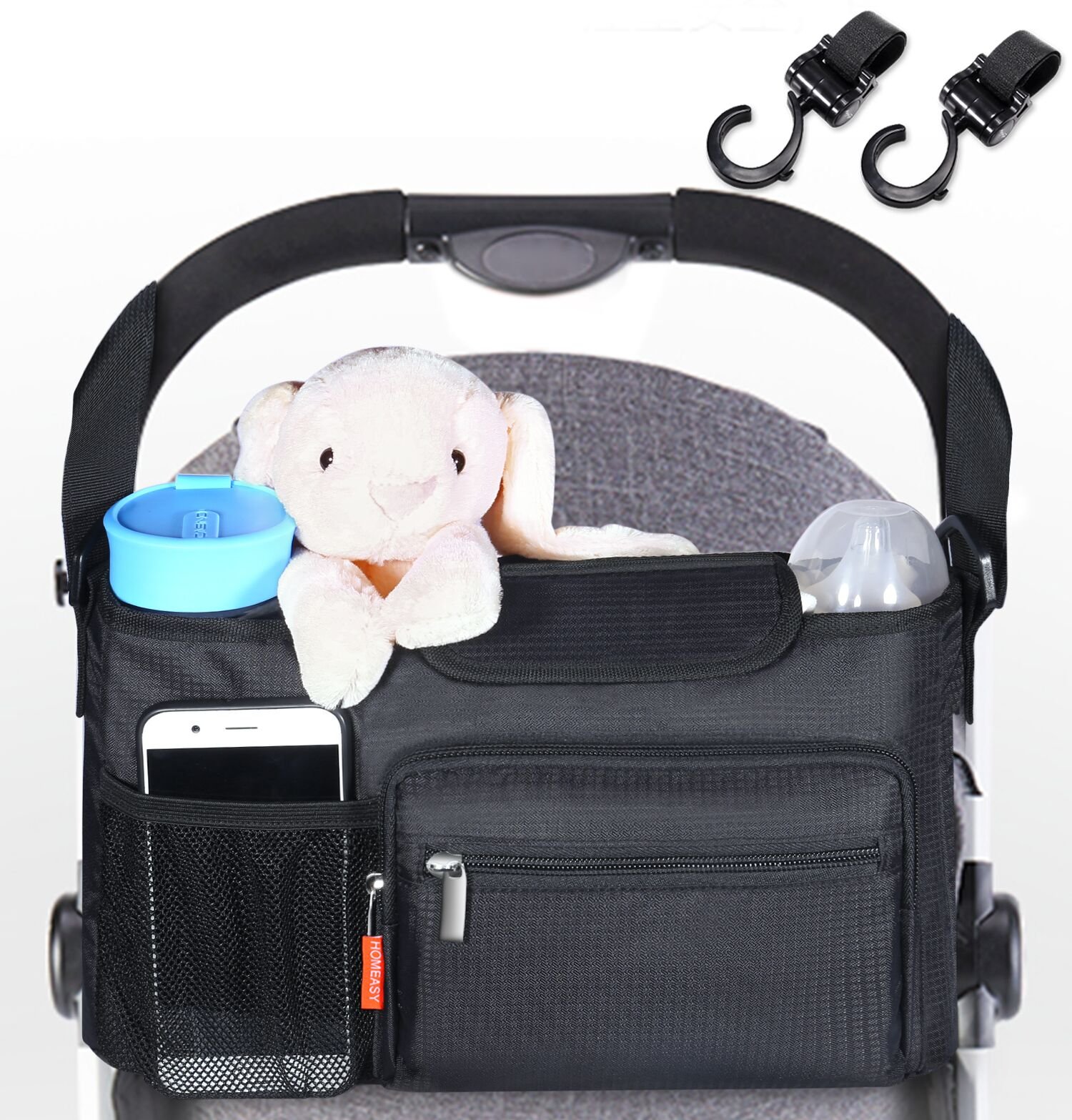 With two hooks, if used in combination with a stroller bag, it will be easier to install.