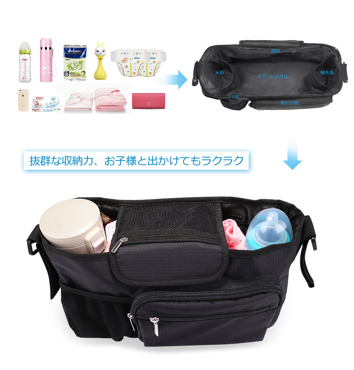 If you go out with a baby and you have to carry bags such as tissue, hand towel, toys and diapers,