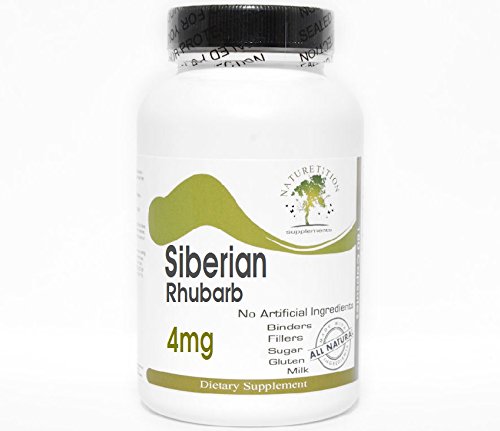 -. Feature : Siberian Rhubarb Extract 4mg ~ 200 Capsules - No Additives ~ Naturetition Supplements / The product does NOT contain: Preservatives, artificial coloring, artificial flavor, yeast, corn, milk or milk derivatives, lactose, salt, sodium, soy, sugar, gluten, starch or wheat. / Best Quality. / Made in USA / 100% Pure and Natural. Other Ingredients: Gelatin, Rice Powder.