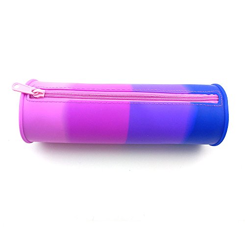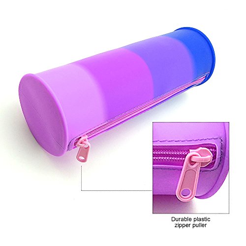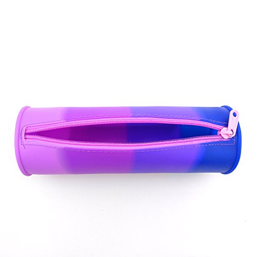 Round Silicone Pencil Case pouch for Kids, Grape Color Large Pencil Holder, Multi-functional School Pencil Bags with Zipper for School Girls Boys , 4 Colors Available
