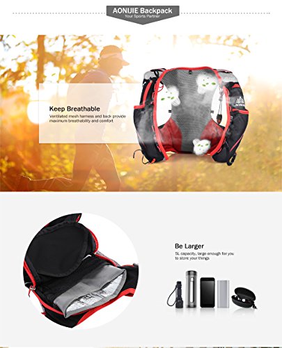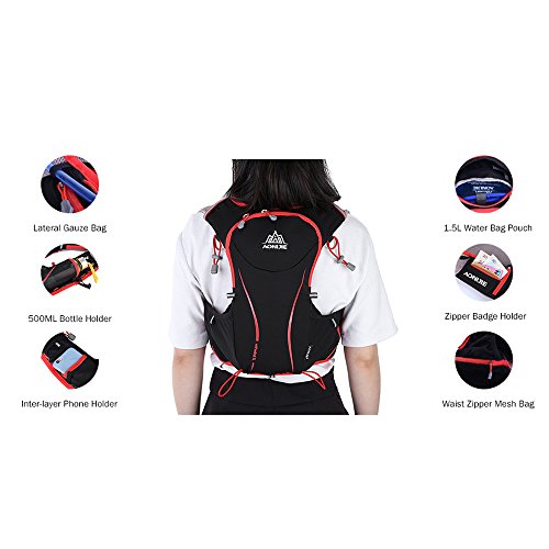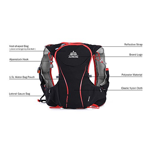 -. Feature : STRONG FRAME AND DURABAL MATERIAL:Made of ultralight elastic nylon cloth, polyester, breathable mesh back and shoulder strap. / FIT YOU WELL: Ergonomic design, Vest-shaped bag coming with adjustable waist strap and high elastic chest strap,two sizes for your option. / LIGNT WEIGHT AND GOOD VOLUME: Weight 0.51 pounds , Capacity 5L. The maximum loading weight is 22.05 pounds, two side pockets for even more space. / MULTIPLE STORAGE COMPARTMENT: Designed with 10 exterior pockets,equiped with an emergent whistle. / FOR UNISEX: Designed for men and women, the younger and the older. Good for all ages.