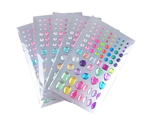 yueton 5 Sheets Colorful Assorted Self Adhesive Bling Rhinestone Craft Jewels Gem Diamond Sticker Embellishments