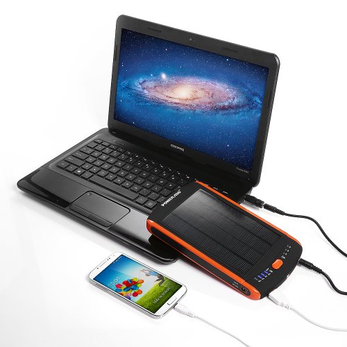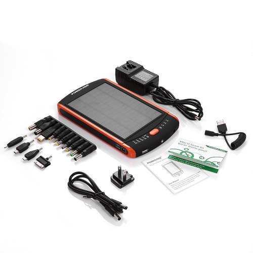 - Feature : Solar energy technology, enviromental friendly and will not have to worry about your device run out of source anymore when outside. / Monster capacity of 23000mAh; Provides 1 DC output for your laptop, and 1 USB port for 5V USB-charged devices. / Various connectors cover major types of laptops and cell phones on the market, DC and USB outputs for charging a laptop and 1 5V USB-charged device simultaneously, adjustable 3 voltage levels (12V/16V/19V) suiting your needs for different laptop models. / 4 LED indicators makes it easy to know how much source you've got, it will automatically shut down after 30 seconds if no device is connected. / Industry-Leading Warranty: 24-MONTH warranty and 24*7 easy-to-reach customer service.