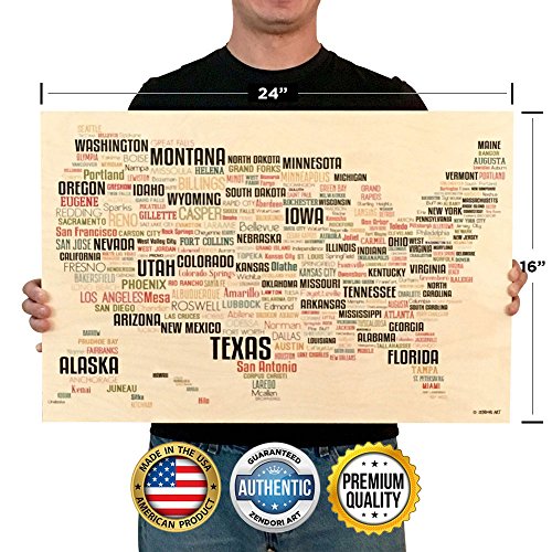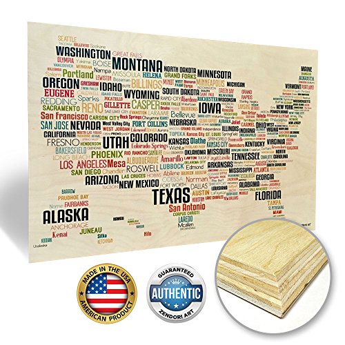 ZENDORI ART 'USA Map' Modern Wall Art - Made in USA (Wood Art, 24 x 16)