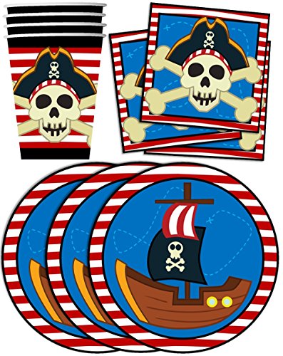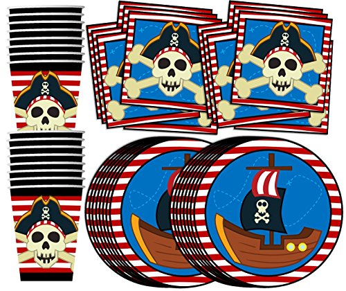 -. Title : Pirate Ship Birthday Party Supplies Set Plates Napkins Cups Tableware Kit for 16