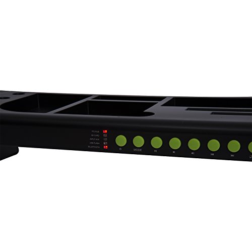 -. Binding : Office Product -. Brand : HOMCOM -. Color : Black -. EAN : 0799932990441 -. Feature : Bluetooth enabled so you can use your phone to listen to music / Hands free ability to answer your phones / Supports SD cards or USB cards and has a USB cable connector / 3.5mm audio jack for headphones / Overall: 22.8"L x 5.9"W x 3.3"H -. Label : HomCom -. Manufacturer : HomCom -. Model : 22-0033 -. MPN : 22-0033 -. PackageQuantity : 1 -. PartNumber : 22-0033 -. ProductGroup : Office Product -. ProductTypeName : OFFICE_PRODUCTS -. Publisher : HomCom -. Studio : HomCom -. Title : HomCom 23" Wireless Bluetooth Speaker Multipurpose Workplace Storage Organizer -. UPC : 799932990441