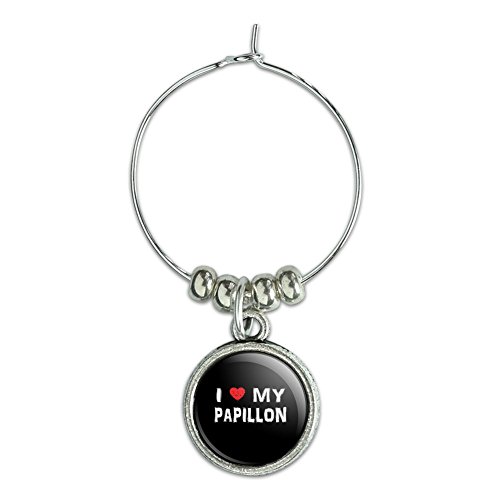 -. Brand : Graphics and More -. Feature : Unique and functional super awesome drinking glass charm / Includes the resin encased design on both sides of the 15mm metal charm / Approximate size of charm is 15mm / Sold individually / Created by Graphics and More in the USA -. Label : Graphics and More -. Manufacturer : Graphics and More -. ProductGroup : Kitchen -. ProductTypeName : KITCHEN -. Publisher : Graphics and More -. Studio : Graphics and More -. Title : Wine Glass Charm Drink Marker I Love My Dog K-P