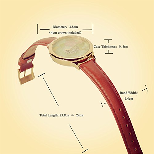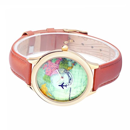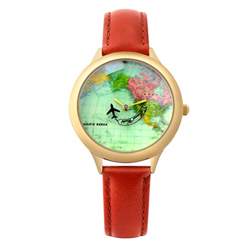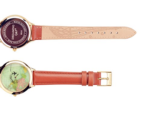 -. Feature : PRETTIER DETAILS: High class appearance,delicate vintage watch dial,IP plating golden color case, flowers pattern engraved on strap inner side / UNIQUE DESIGN: Special design for female, the aircraft travels clockwise, retro and fashion world map,cool and elegant style / GOOD QUALITY: Metal Japanese quartz movement,precise time display,handmade quality genuine leather watch strap,wear comfortable / BETTER CONDITION: New with tag,genuine brand,delicate details,different from cheap ones / BEST GIFT: Packaged in nice gifts box,best present for friends and family.According to buyers' feedback,this products has been improved from 10/10/2016,better quality,better movement,better materials.