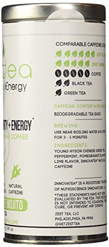 -. Title : Energy Tea - High Caffeine Pomegranate Mojito Green Tea - 135 Mg Of Caffeine Per Bag