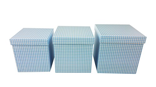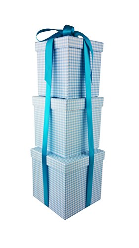 Gingham Design Nested Boxes - Set of 3 for Baby Shower, Weddings, and Any Party (Gingham Blue)