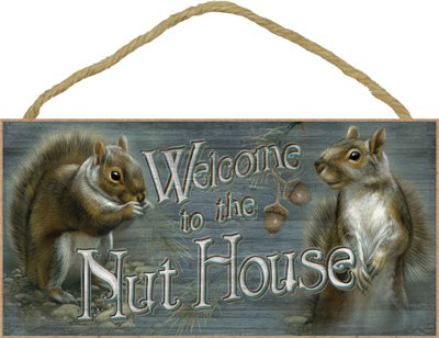 (SJT21530) Welcome to the Nut House 5" x 10" wood plaque, sign - Features the artwork of JQ Licensing