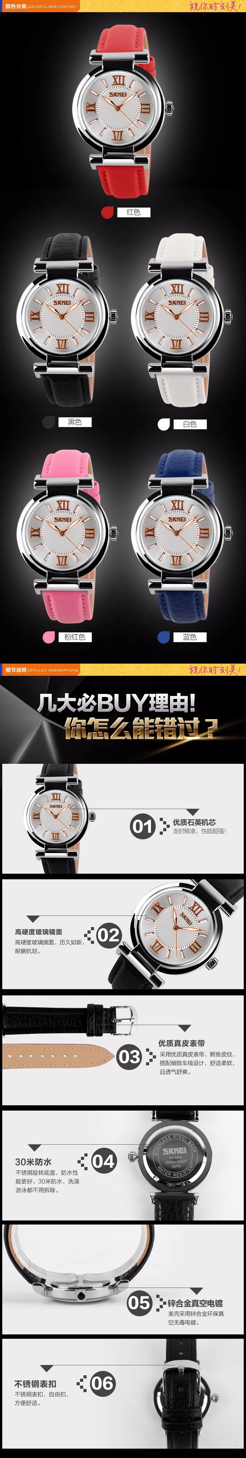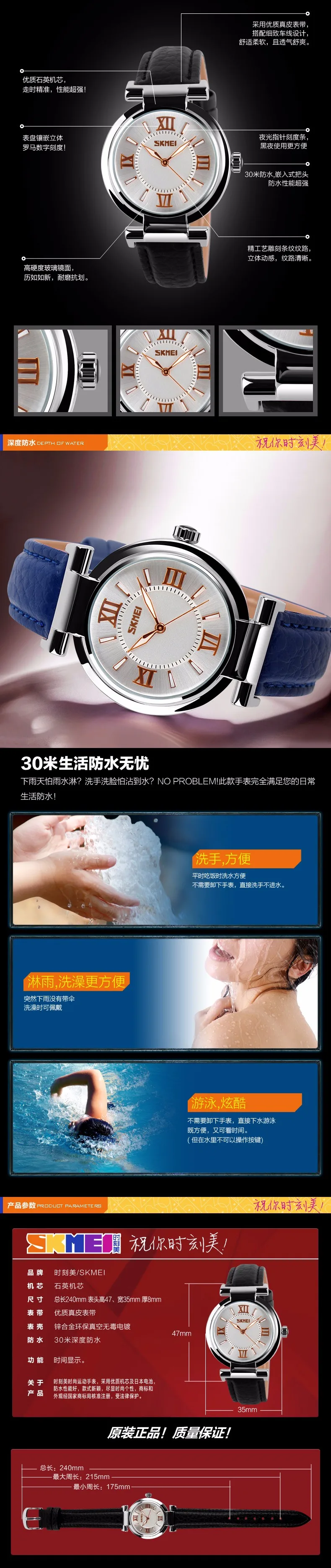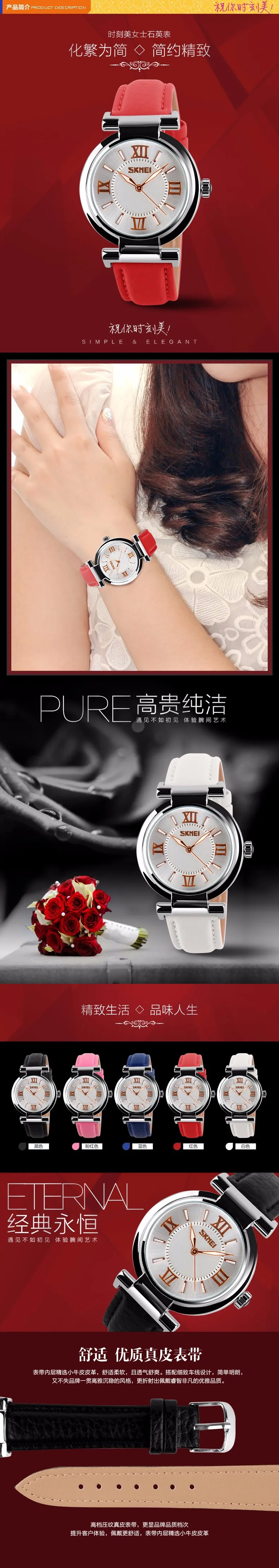 SKMEI2016 Fashion Women Watch Luxury Brand Leather Strap Watch Women Dress Watch Fashion Casual Quartz Watch Reloj Mujer Wristwatch