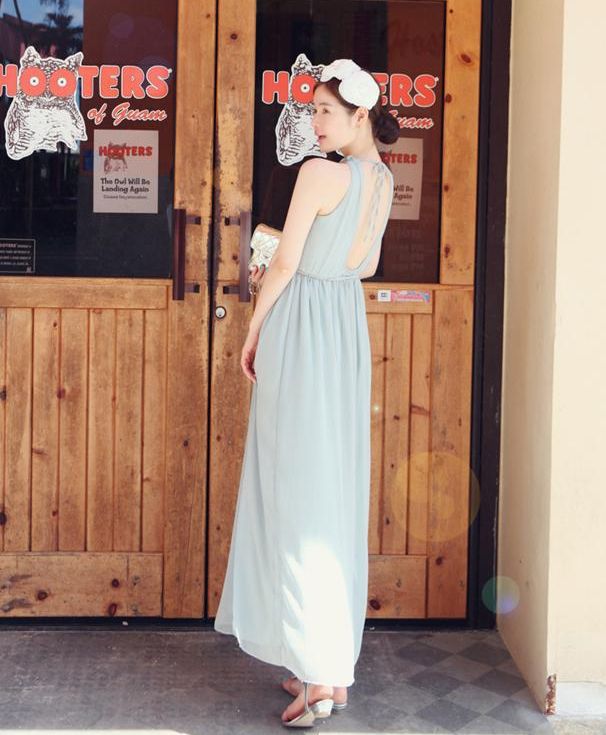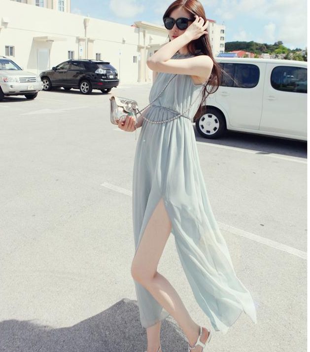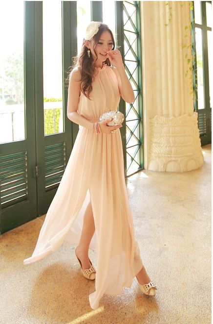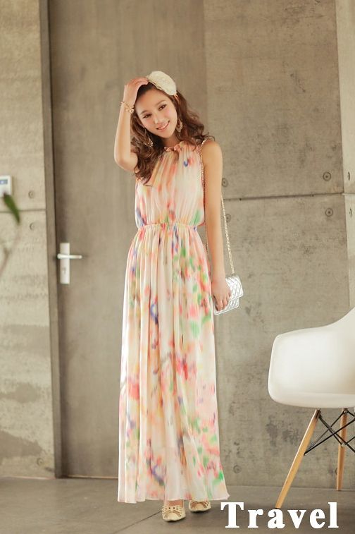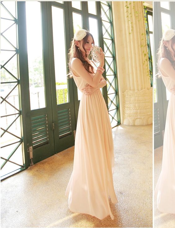 Chiffon long dress is one of the hottes clothes that beauty-loved girls must have, this 2013 korean fasion dress make you be the trendsetter in this year!
