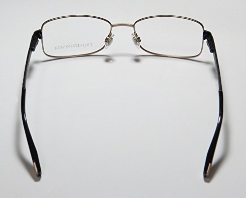 Brand: Trussardi Style: 12706 Gender: unisex Frame Type: full-rim Frame Material: metal Case: eleganzo The frame is fully rx-able and can be fitted with prescription and/or tinted lenses at most optical stores. Please note that factory demo lenses have a logo stamped on them in ink. These eyeglasses are made of corrosion resistant and strong metal. The frame has spring hinges. Spring hinge temples prevent you from stretching the fit of your glasses and ensure that they remain intact and not become loose or out of shape. Please keep in mind that original case is not included with this frame. However, we will include an Eleganzo hard case at no extra charge to keep your eyeglasses protected. These eyeglasses retail for $220.00 at upscale stores that carry designer frames. Save your money and get them here! The pictures cannot fully reflect the beauty of this piece of designer eyewear. These eyeglasses look even more elegant in real life. This is one of the most popular Trussardi styles on the market right now. 0 |