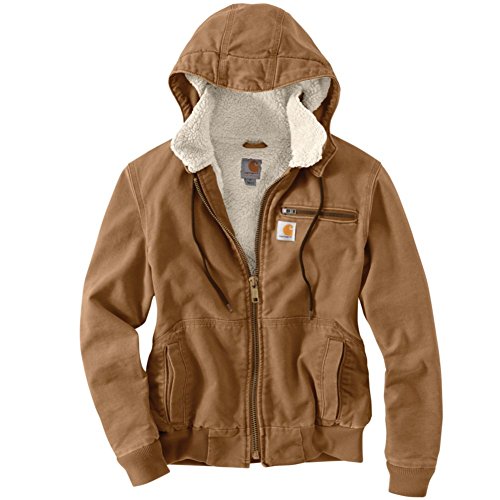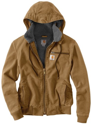 Studio : Carhartt Women's Collection Publisher : Carhartt Women's Collection Binding : Apparel Product Description When the mercury dips and the cold wind picks up, reach for this jacket. Made of 12-ounce, 100 percent cotton weathered duck, it has insulated faux shearling lining to keep you warm, and quilted-nylon lining in the sleeves. There's a center-front zipper, a removable three-piece hood, rib-knit cuffs and a bottom band. For storage, there's a left-chest pocket with a zipper, two lower-front pockets, and an inside pocket. 0